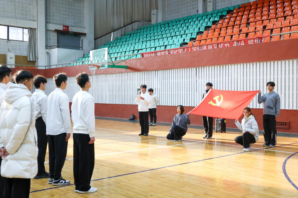 仪式在庄严的国歌声中拉开帷幕。樊丽为新发展团员颁发团徽,史健桥为新发展党员颁发党徽。随后,全体新成员面向旗帜庄严宣誓,许下践行初心使命的承诺。新发展团员代表温宇航表示,将以入团为荣,铭记共青团百年征程,以青春之力深耕学业、奋勇争先,践行服务人民的青春使命;新发展党员代表范宇浩分享入党初心,承诺立足“体教融合”发展背景,在体育教学实践与竞技赛场主动担当作为,切实履行党员职责。