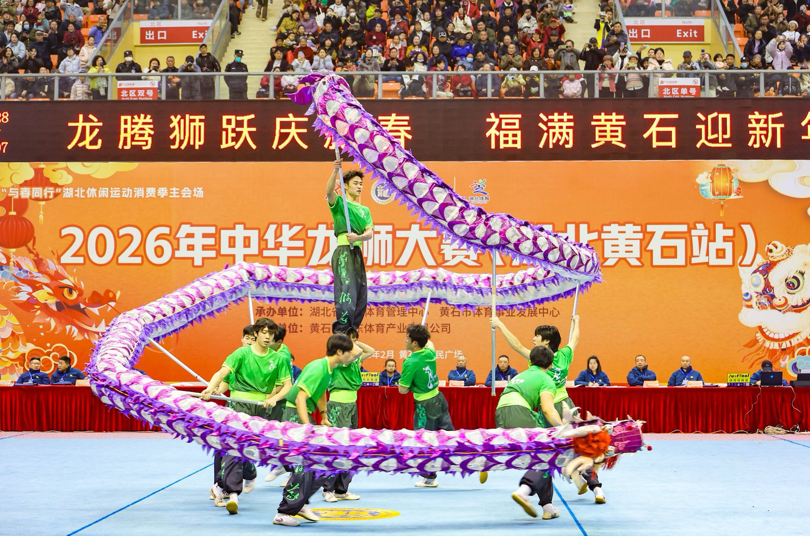 3月1日,2026年中华龙狮大赛(湖北黄石站)在黄石体育馆落幕。本次赛事汇聚全国24支高水平龙狮队伍同台竞技,太阳成tyc33455cc龙狮团在领队梅林琦老师及教练吴冰涛、覃圆媛、赵姿琪的带领下,凭借扎实功底和稳定发挥,斩获一银一铜,展现了湖大学子的风采与竞技实力。