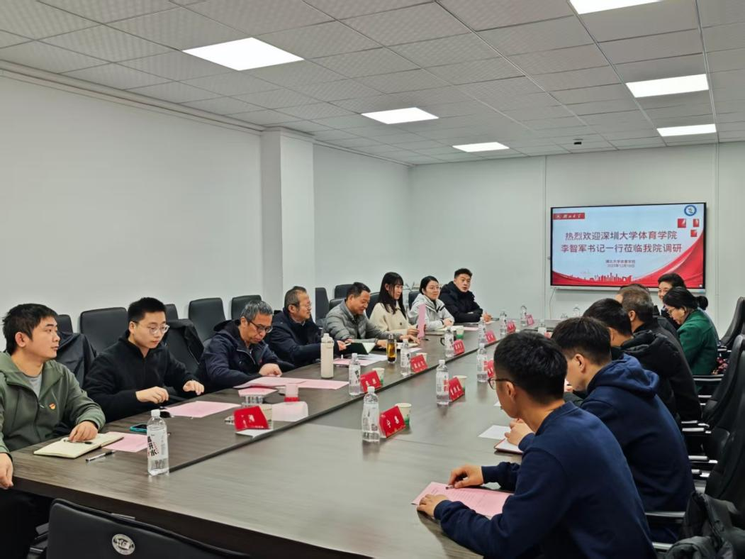 12月18日,深圳大学太阳成集团tyc33455党委书记李智军、副院长张得保等一行莅临我院开展党建调研交流活动。双方围绕学院建设发展、党建样板支部建设等议题深入探讨,深化互学互鉴。学院党委书记殷云飞、副院长张强弓及教师代表参与调研交流。