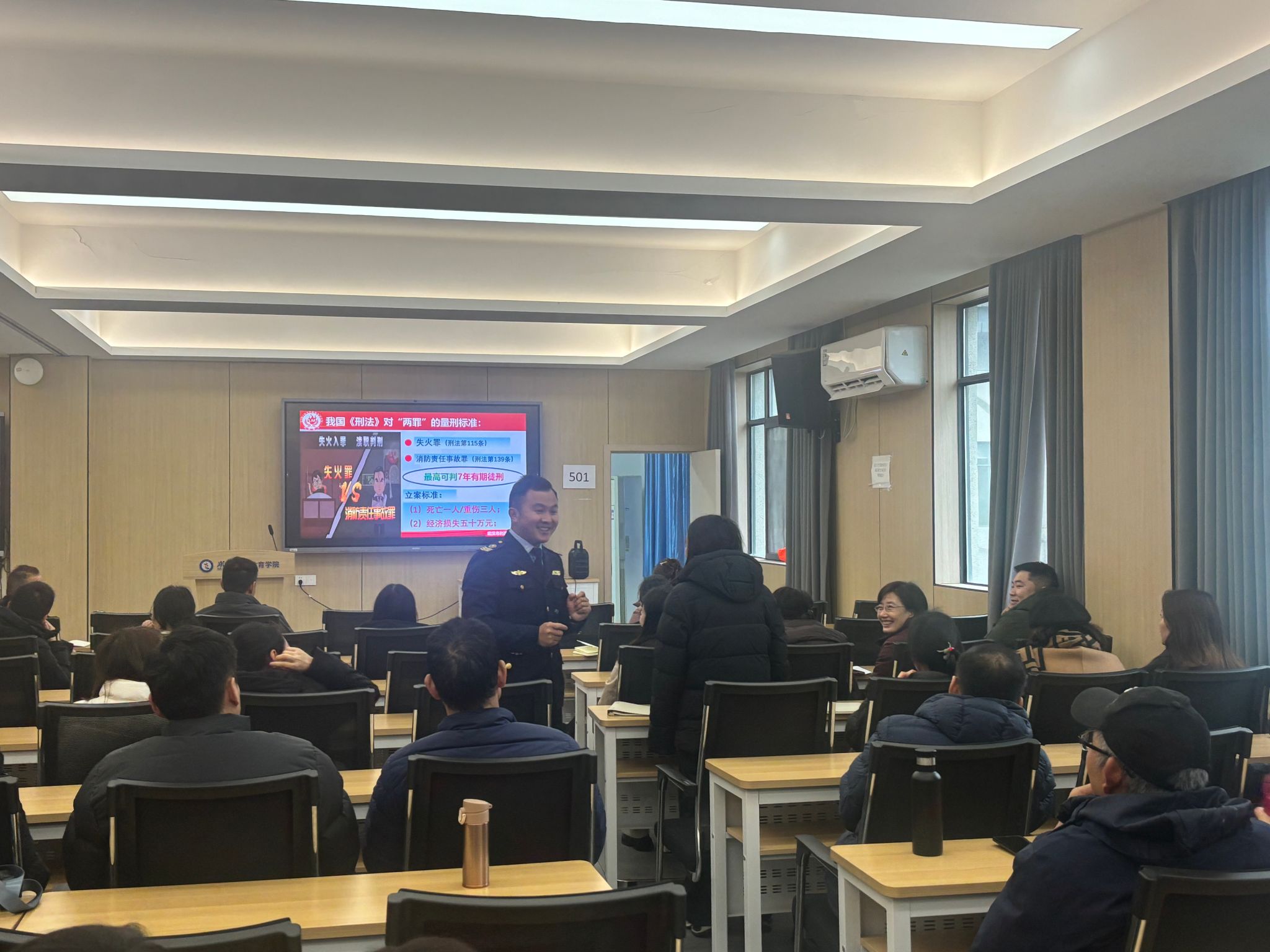 会议尾声,学院特邀消防部门讲师为全体教职工开展消防安全专题讲座,进一步强化教职工消防安全意识,筑牢校园安全防线。