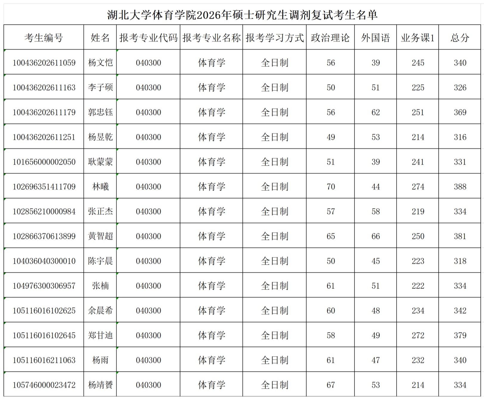 太阳成集团tyc334552026年硕士研究生调剂复试考生名单